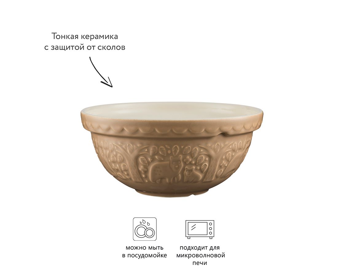 Миска In the Forest Bear поможет облегчить процесс приготовления блюд на вашей кухне. Посуда предназначена для замешивания теста, смешивания ингредиентов, а также подачи салатов или фруктов. Дизайнеры украсили изделие тисненым рисунком в виде лесного пейзажа. Чаша выполнена из тонкой керамики, которая отличается прочностью и стойкостью к сколам. Изделие подходит для использования в микроволновой печи и мытья в посудомоечной машине.
