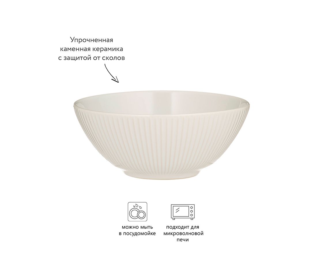 Миска Linear наделена стильным дизайном с простым силуэтом. Для оформления мастера используют рифленое тиснение, которое придает посуде утонченность и делает её оригинальным украшением стола. Миска выполнена из качественной каменной керамики, устойчивой к сколам и повреждениям. Посуда идеально подходит для подачи первых блюд или салатов. Может использоваться в микроволновой печи и посудомоечной машине.
